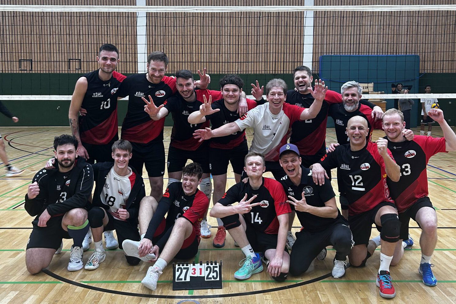 Die Ansprache wirkte, wir spielten nun souverän, holten Punkt für Punkt auf und gewannen am Ende der Crunch Time mit einem komfortablem Vorsprung den ersten Satz. Der zweite Satz war ein Abbild des ersten und es sah bereits nach einem klaren 3 Satz Sieg aus. Im dritten Satz aber leisteten wir uns spielerisch wie auch mental eine Auszeit, die in einer aneinander Reihung mehr oder weniger großen Fehlern mündeten, nicht zuletzt in einem Punktverlust aufgrund von zu viel Spielern -7 statt 6 – auf dem Feld. Jetzt zeigten wir aber die passende Reaktion, spielten fokussiert ohne Orplid große Breakchancen zu geben und nutzten den 3. Matchball zum verdienten Sieg. Coach M. Hackel:“ Das war heute ein gutes Spiel von uns. Ein verdienter Sieg und wichtige 3 Punkte.“